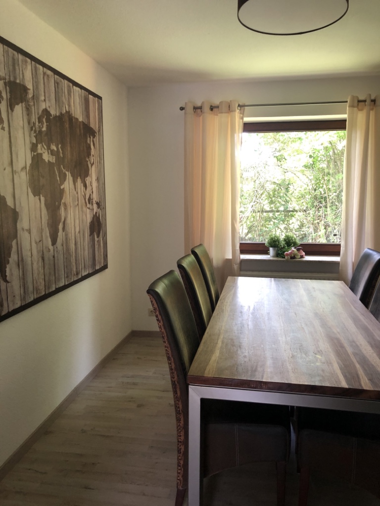 Das Esszimmer verfügt über einen großen Esszimmertisch mit 6 Stühlen. Ein Hochstuhl wird bei Bedarf gerne kostenlos dazu gestellt.